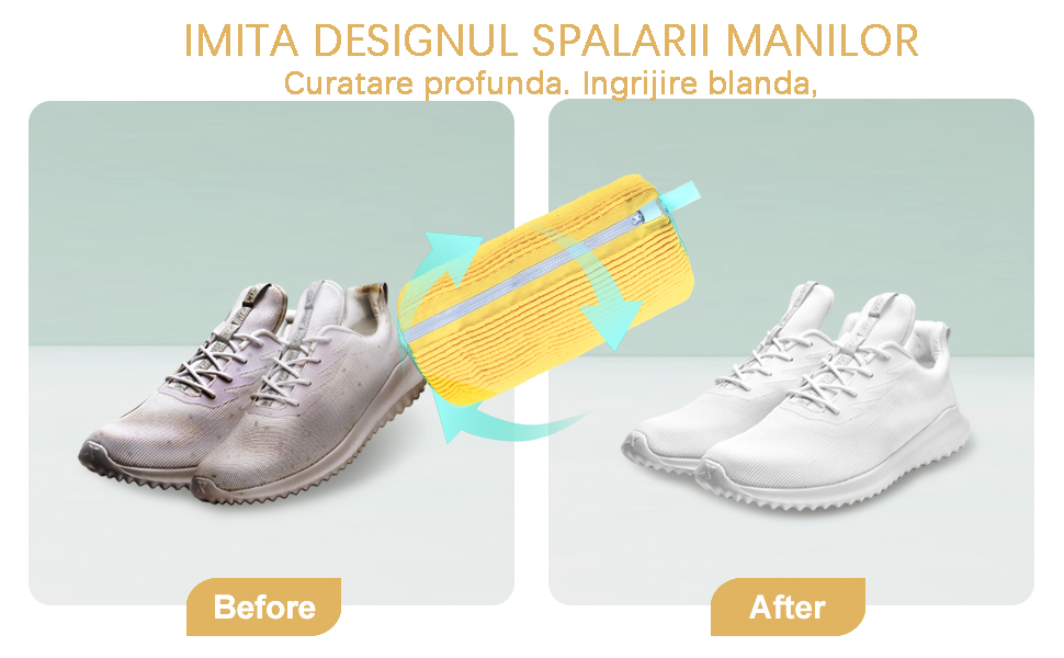 Spune-ti adio spalarii mainilor! Geanta noastra pentru incaltaminte de rufe este solutia perfecta. Incarcati pur si simplu pantofii murdari in geanta, inchideti-l cu fermoar si aruncati-l direct in masina dvs. de spalat. Economisiti timp si energie pretios, asigurandu-va in acelasi timp ca pantofii sunt curatati temeinic. Aceasta geanta pentru pantofi pentru rufe este completarea perfecta pentru orice stil de viata modern si ocupat